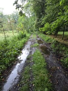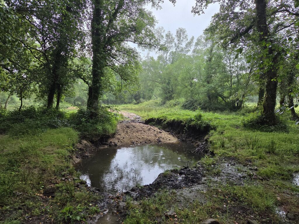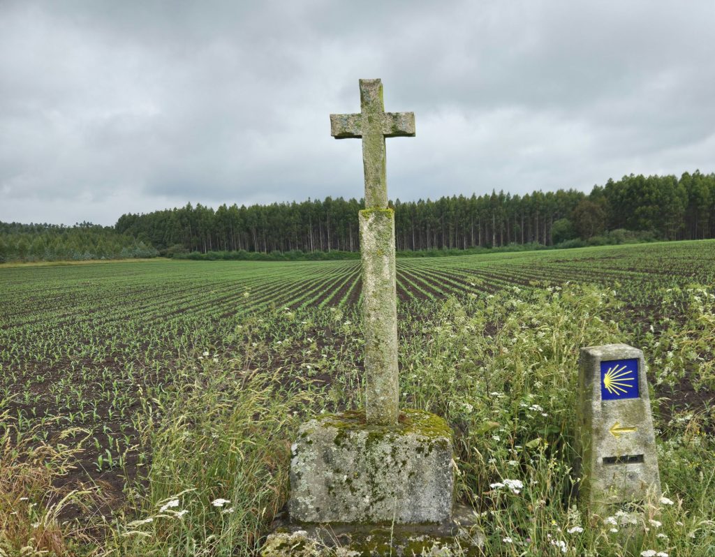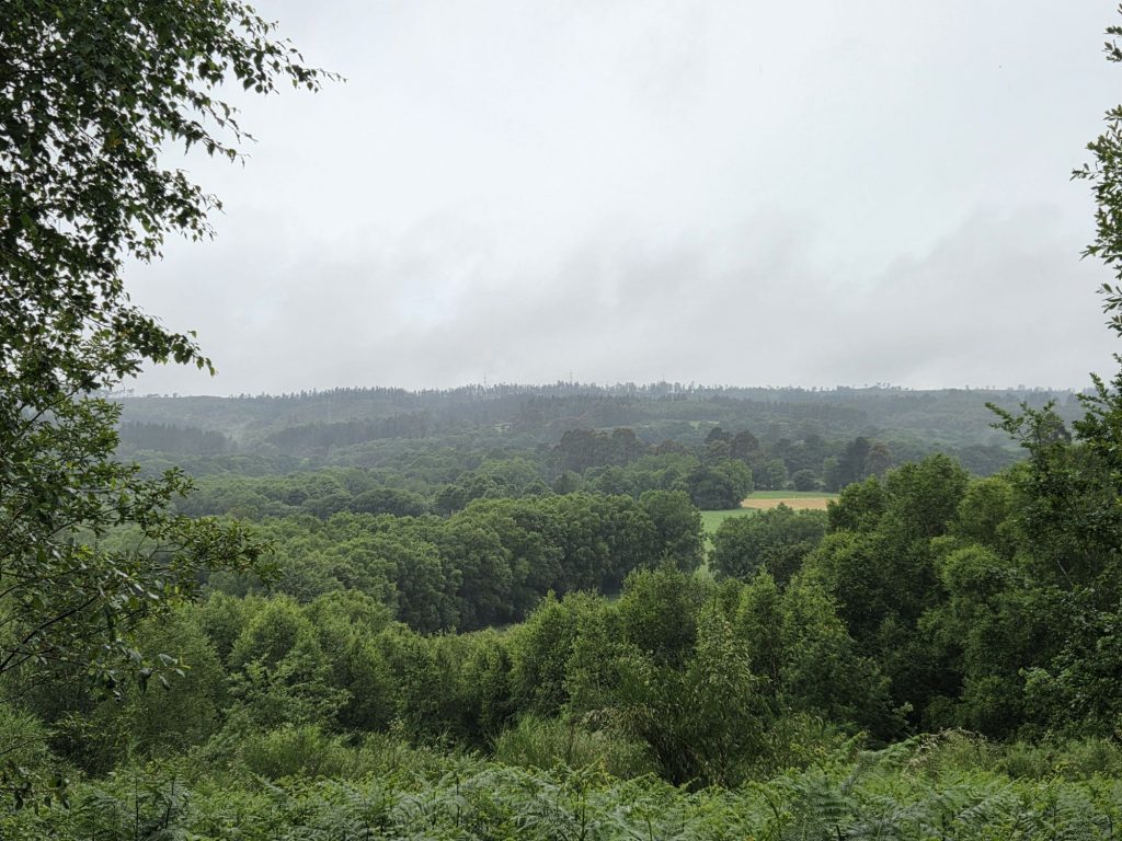 Der Start auf der ausgewählten Strecke (galizischer Wanderweg) fing toll an – von jetzt auf gleich in der Natur. Das wurde uns dann allerdings auch zum Verhängnis, denn etwas weiter durch Wald und Flur wurde der Weg schmaler und das kniehohe Gras war vom Unwetter noch so nass, dass wir durchnässte Schuhe erwarten konnten. Also Stopp – umdrehen und Alternative suchen. So kamen wir mit ca. 1 h Verzögerung wieder nach Guitiriz und auf eine begehbare Strecke.