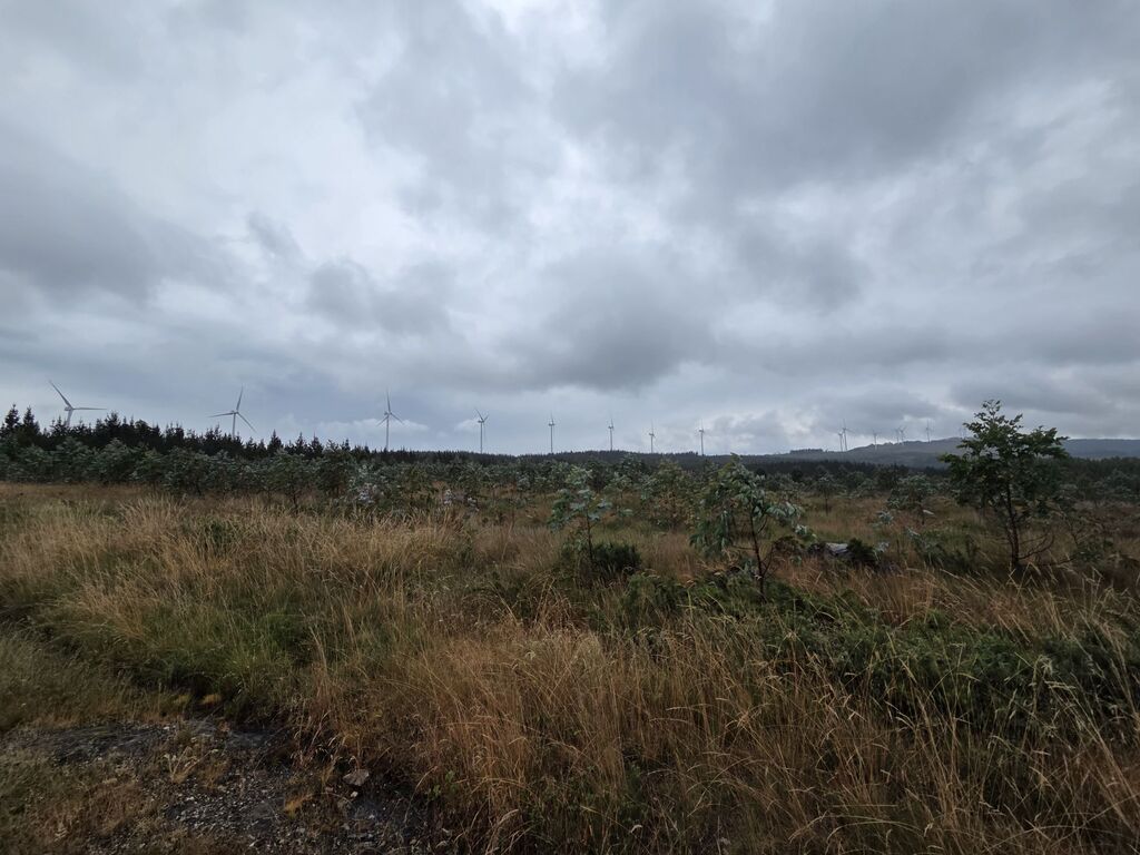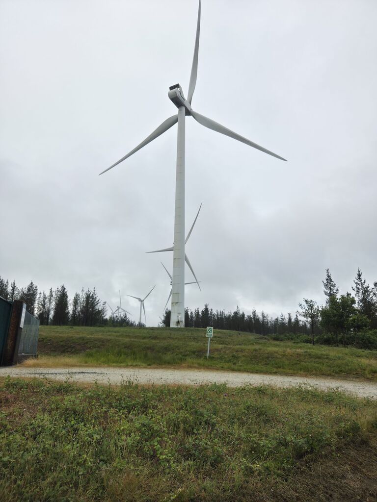 Nun ging es flott voran, der Regen wurde langsam, aber stetig, weniger und unsere Laune besserte sich zusehens. Wir erklommen einen massiven Höhenzug ohne dazwischen liegende Flachstrecke – das Stück fühlte sich schier endlos an. Oben angekommen durften wir feststellen, dass auch Spanier Ökostrom super finden. Hier wurde für einen Windpark eine extra Stromtrasse gebaut – das wäre im derzeitigen Bayern undenkbar.