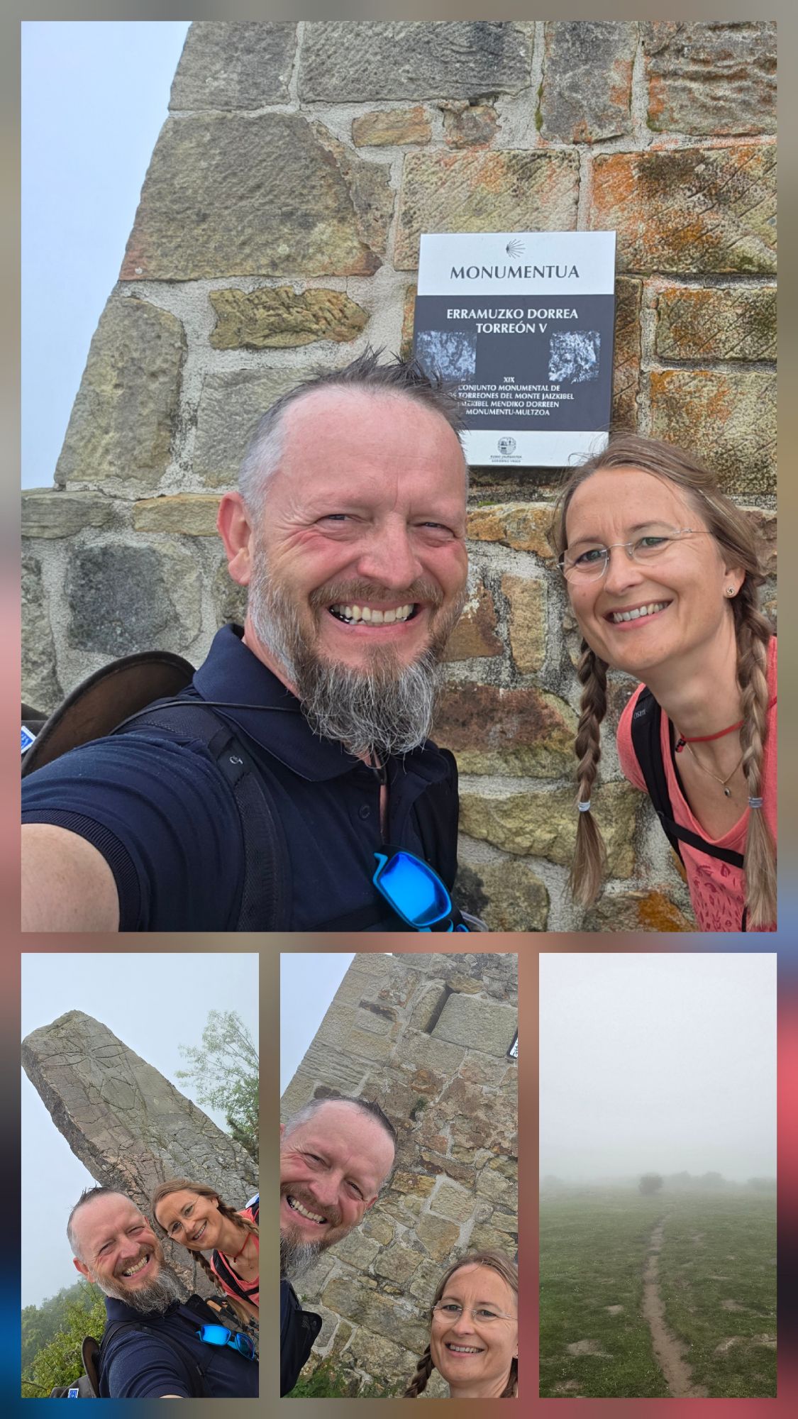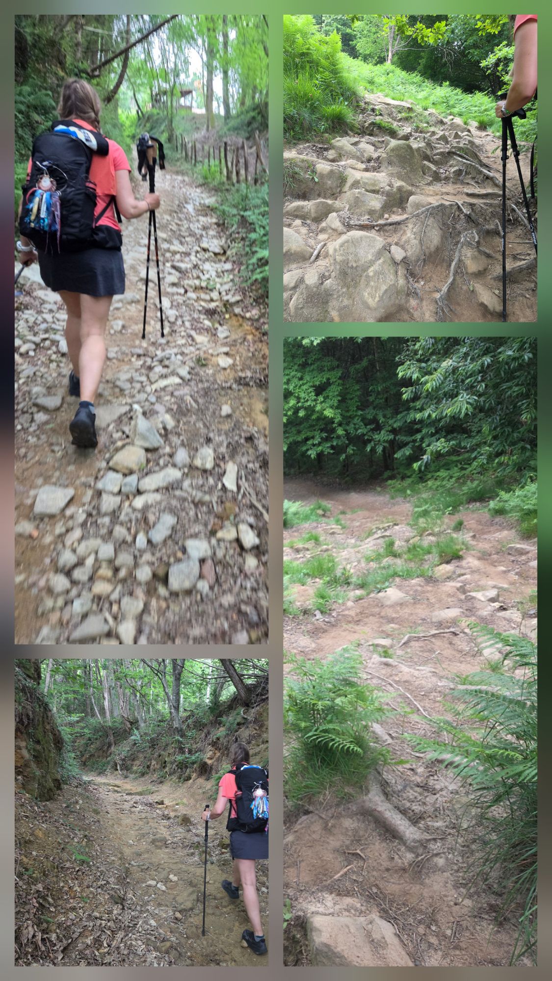 Dann ging es tatsächlich los – und schon nach dem ersten Kilometer begann der Berg uns gehörig zu fordern. Die Wege waren an vielen Stellen ausgewaschen und so wurde es eine Kletterpartie über Felsen und Wurzeln. Die Bergspitzen des Jezkibel hüllten sich in Wolken, so dass die Sicht auf die Pyrenäen und die Biskaya fehlten. Dennoch war es warm und die Haare waren von Schweiß und Wolken nass.